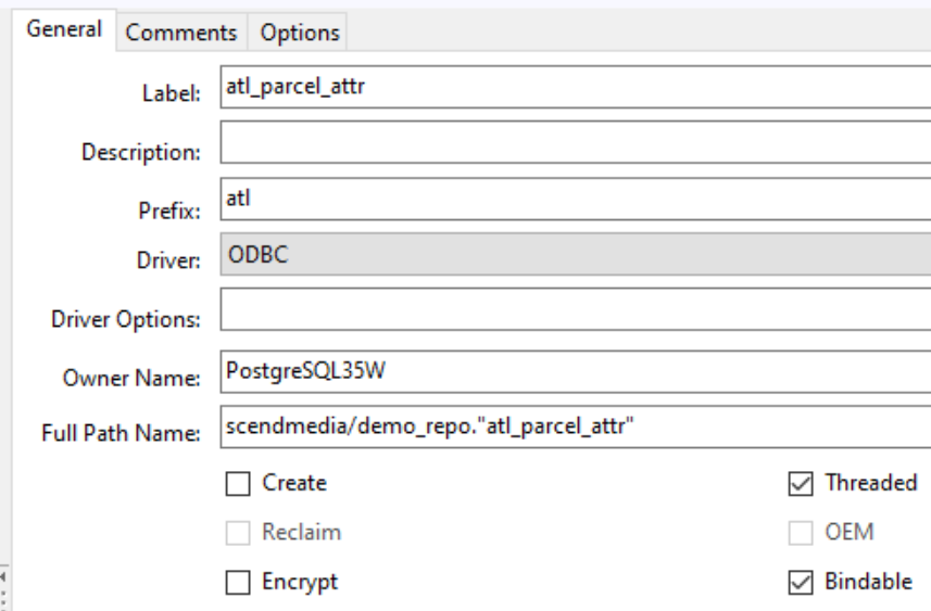06B1CH(3) 14:27:57.147 scendmedia/demo_repo."atl_parcel_attr" FILE,DRIVER('ODBC'),OWNER(******),NAME('scendmedia/demo_repo."atl_parcel_attr"'),THREAD