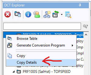 If I just want the Table and it’s fields in the Dictionary, I simply highlight the Table and from the “Quick View” of the Table, I just highlight the fields ( you can highlight everything including Keys and Relationships" , Right mouse click and select “Copy Details”. You can then paste it into your favorite text editor.
