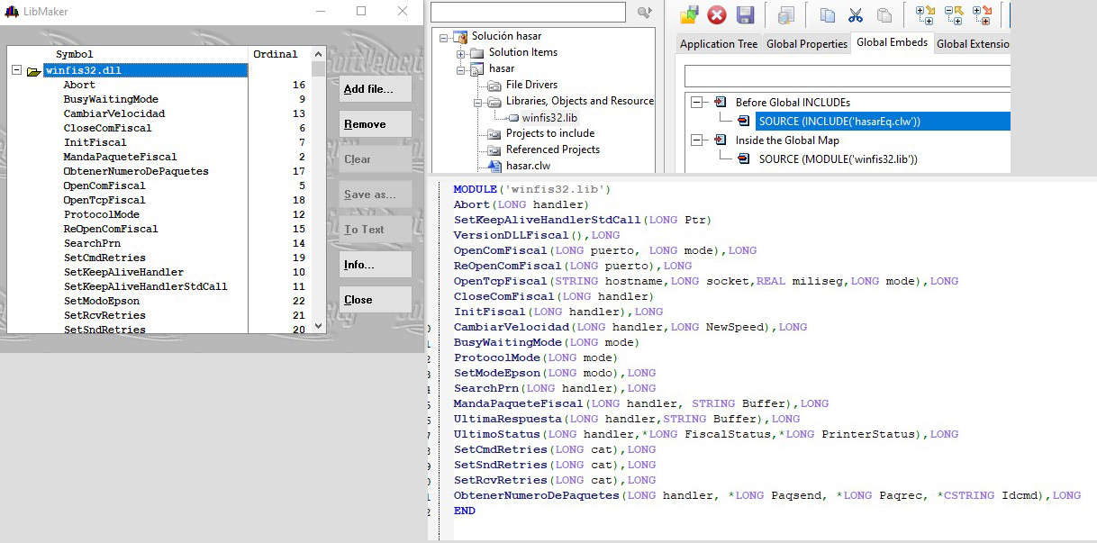 Hi there thanks for answer, winfis32.dll is not made on Clarion Compiler, i used libmaker to generate lib to import its procedures. first i did it using MODULE(‘winfis32.lib’) declaration by i had same issue. Then i choose to add it using “Application → Insert Module” but had same result
