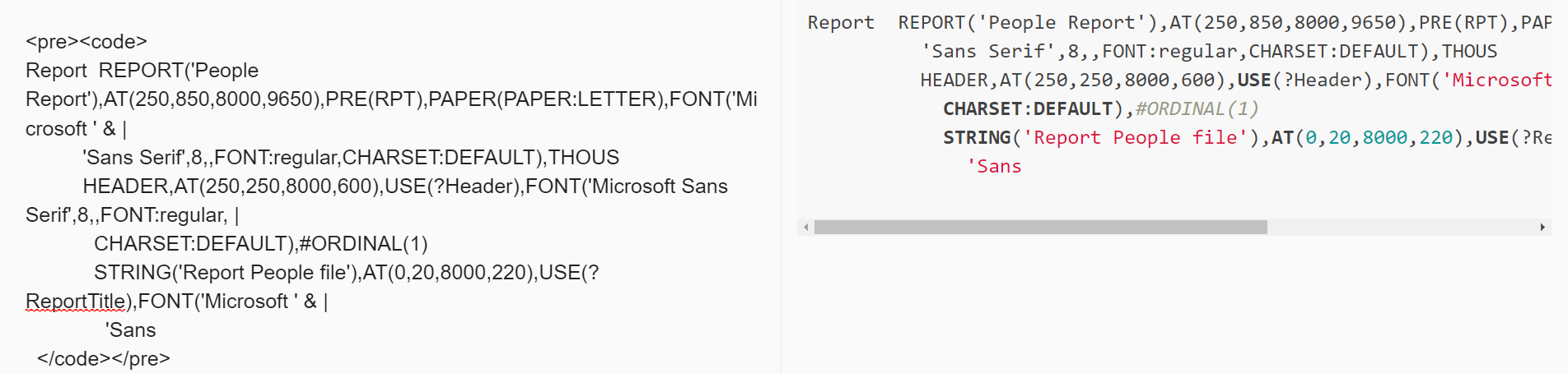 STRING(@s20),AT(29,0,44,5),USE(FILE:Somefield2),#ORIG(FILE:Somefield2,#ORDINAL(11)