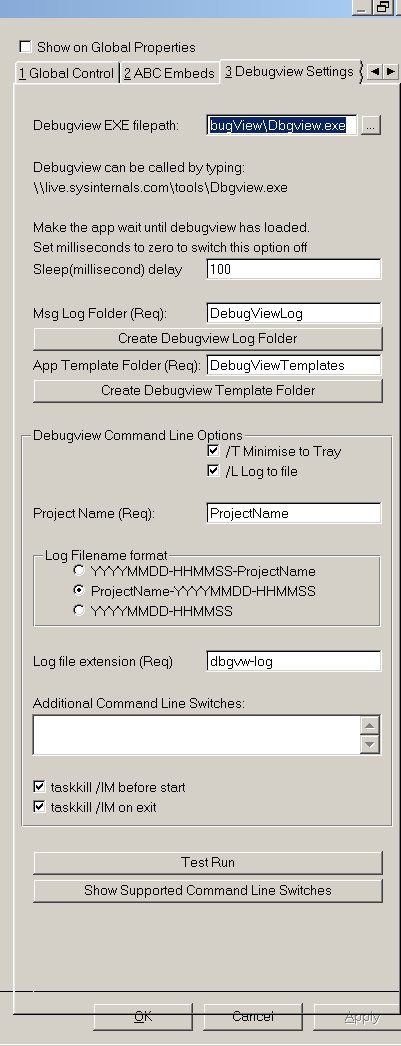 I was calling Drive\Path\debugview.exe from #Run a few weeks ago and now its stopped working a couple days a go.