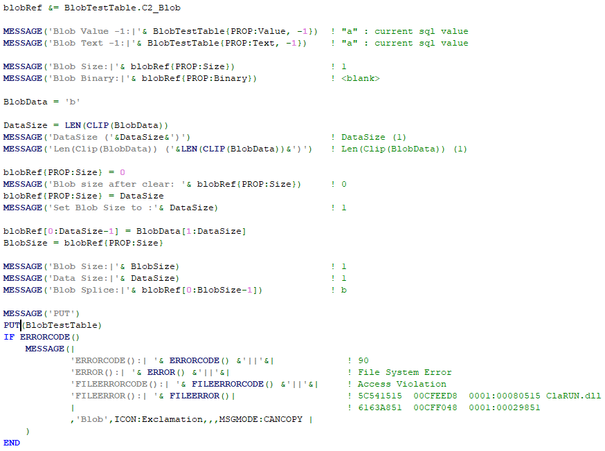 Then I updated the Sql Blob/Text field manuallyto ‘a’. I could then read the value ‘a’ from Clarion. But then when using PUT - I got the same error again.