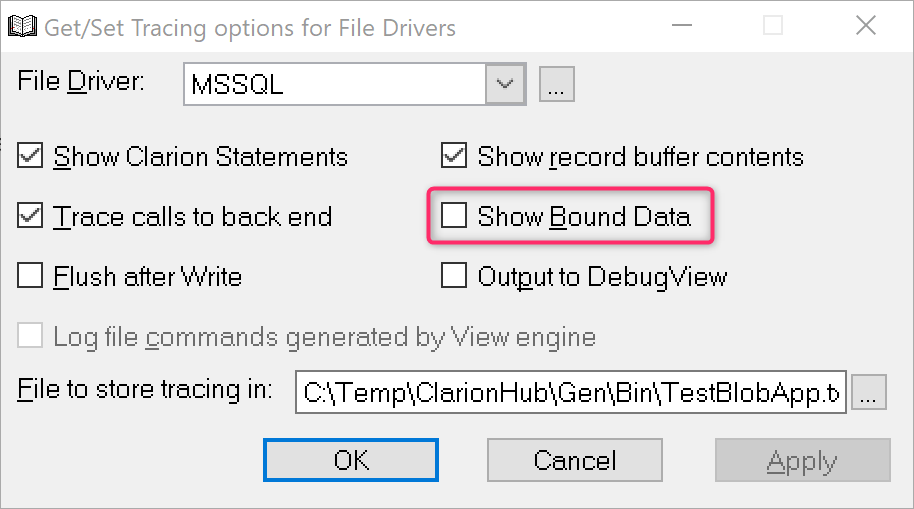 I see, it first worked because Clarion Trace was disabled. When I turned it on for MSSQL driver, it produced the error like you showed.