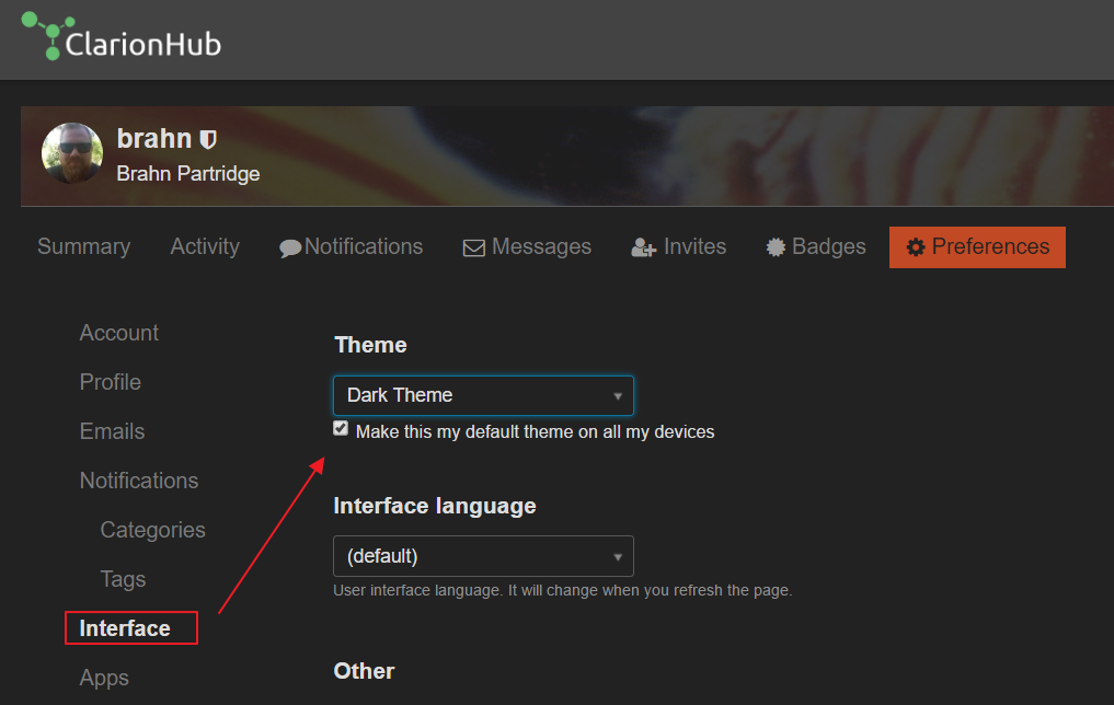 Of particular note, you can now select a “theme” for your ClarionHub viewing pleasure!