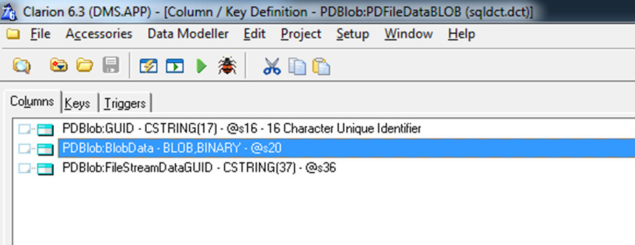 In table [PD_DB] , Clarion field [BlobData] is defined as BLOB,BiNARY .