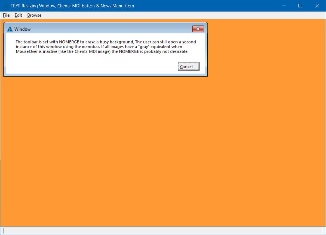 Don’t know what you mean with child windows overlapping. The child windows are inside the app frame. If you need to start a mdi window a second time you have to mimic the menu-items from the html into the appframe menu. The nomerge (in clarion >6) will “help” you to close all mdi’s before starting a new one which imho is a good habit. I attached the prog en sln files for compiling the clw in windows 10. proj_sln_c10.zip (1.2 KB)