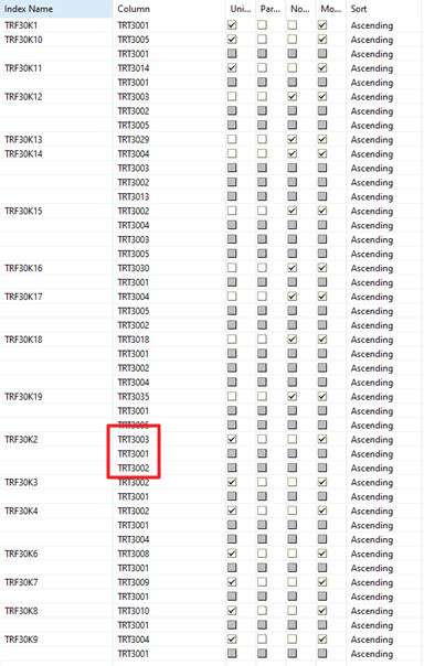 Index TRF30K2 in DDF is described as: TRT3003 + TRT3001 + TRT3002.