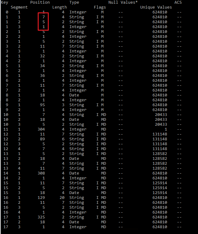 -Flags-AnotherSegment: This bit should be 0 for the last segment of a multipart (or singlepart) key, and 1 for the previous parts. Clarion Synchonizer toggles this bit incorrectly on keys definition of User files with 3 (or more?) parts. It toggles on only for the first segment and not for the second (an onwards?only testes with 3 component keys)