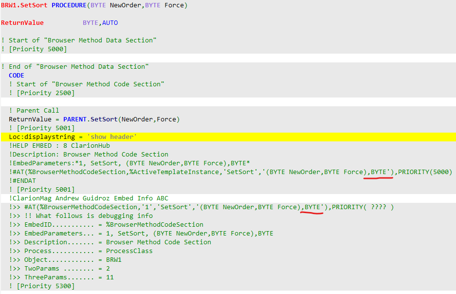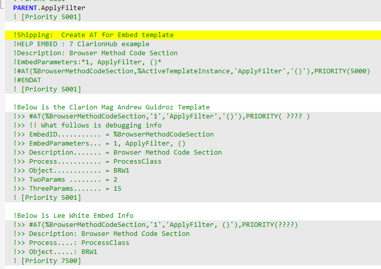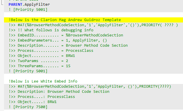 !>> #AT(%EmbedID,%ParamString),PRIORITY( ???? )