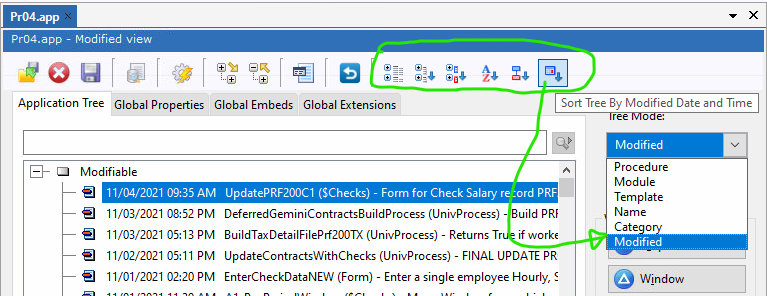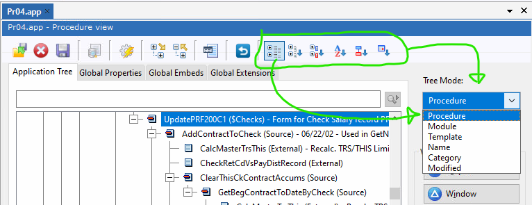 Watching the ClarionLive Open Webinar lets you see how others are using the IDE. I often see developers using the Tree Mode Drop List to change APP views. A faster way is there are 6 buttons on the end of the toolbar that change the Tree Mode view in 1 click: