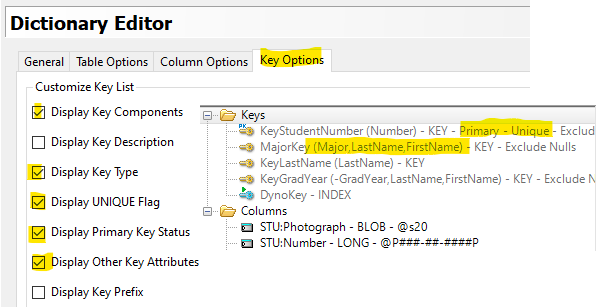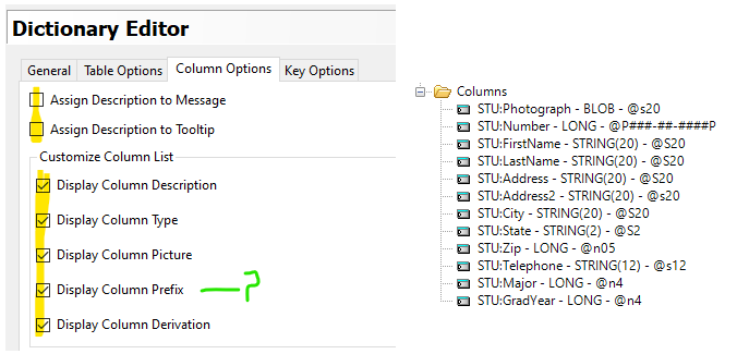 I don’t show the Key Prefix since I have it right below on the Columns. That leaves more room to see the other info. I also don’t show Description but I do not recall why, I think I seldom fill it in because it is used by the wizards.