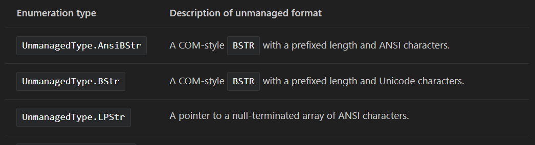 The next MetaData tag of importance is the one proceeding strings. [MarshalAs(UnmanagedType.ByValTStr, SizeConst = 101)]