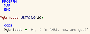 MyUnicode = 'Hi I''m ANSI, how are you?'