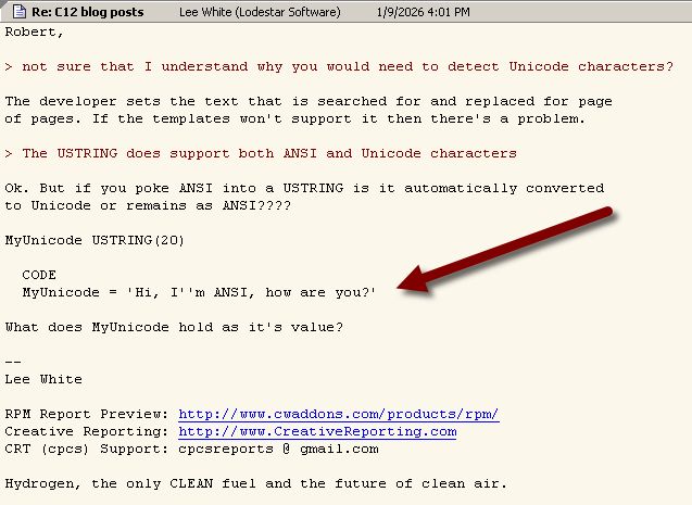 Kind of hard for me to read that since I don’t have a copy of Clarion that understands USTRING.