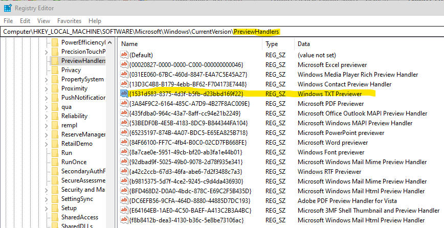 The GUID is still the link to the registered Preview Handler. Here are all the ones on my Windows 10 system:
