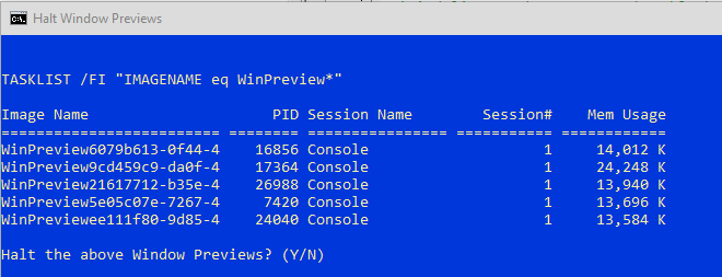 I used TaskList in a BAT file to list all the Clarion Window Previewer EXE’s running, then offer to kill them using Task Kill. Maybe this would be good enough for you.